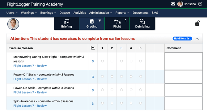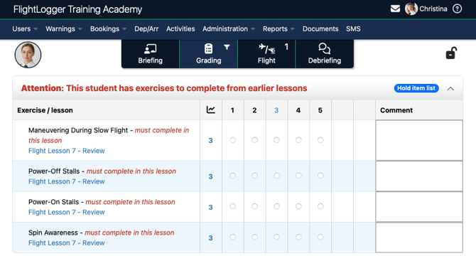 This enhancement helps flight training organizations maintain training quality and ensure that important hold item exercises receive timely attention, supporting more structured and accountable training progressions.