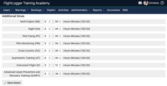 AUPRT time logging can now be configured under the aircraft special flight logs: